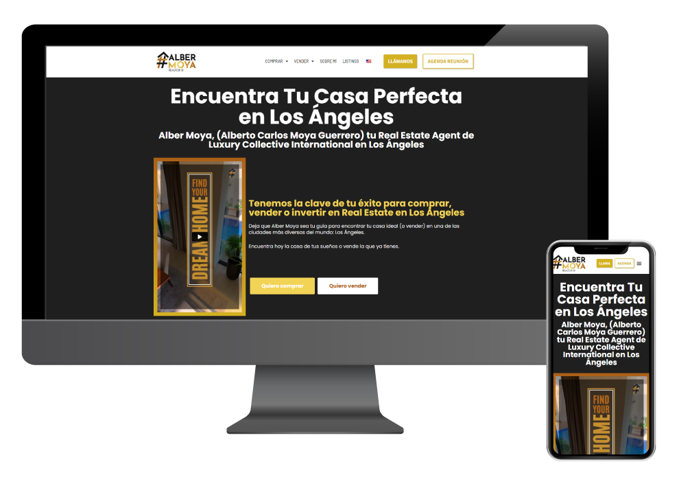 Diseño web profesional para Alber Moya, mostrando casas en venta e información detallada para la compra de viviendas.